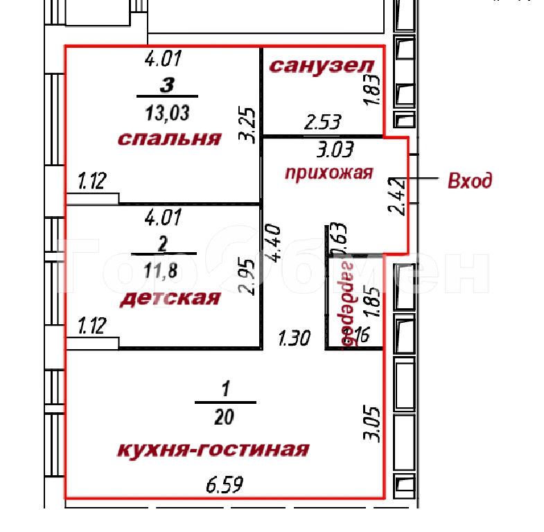 Комнаты: 13 11.8 м2